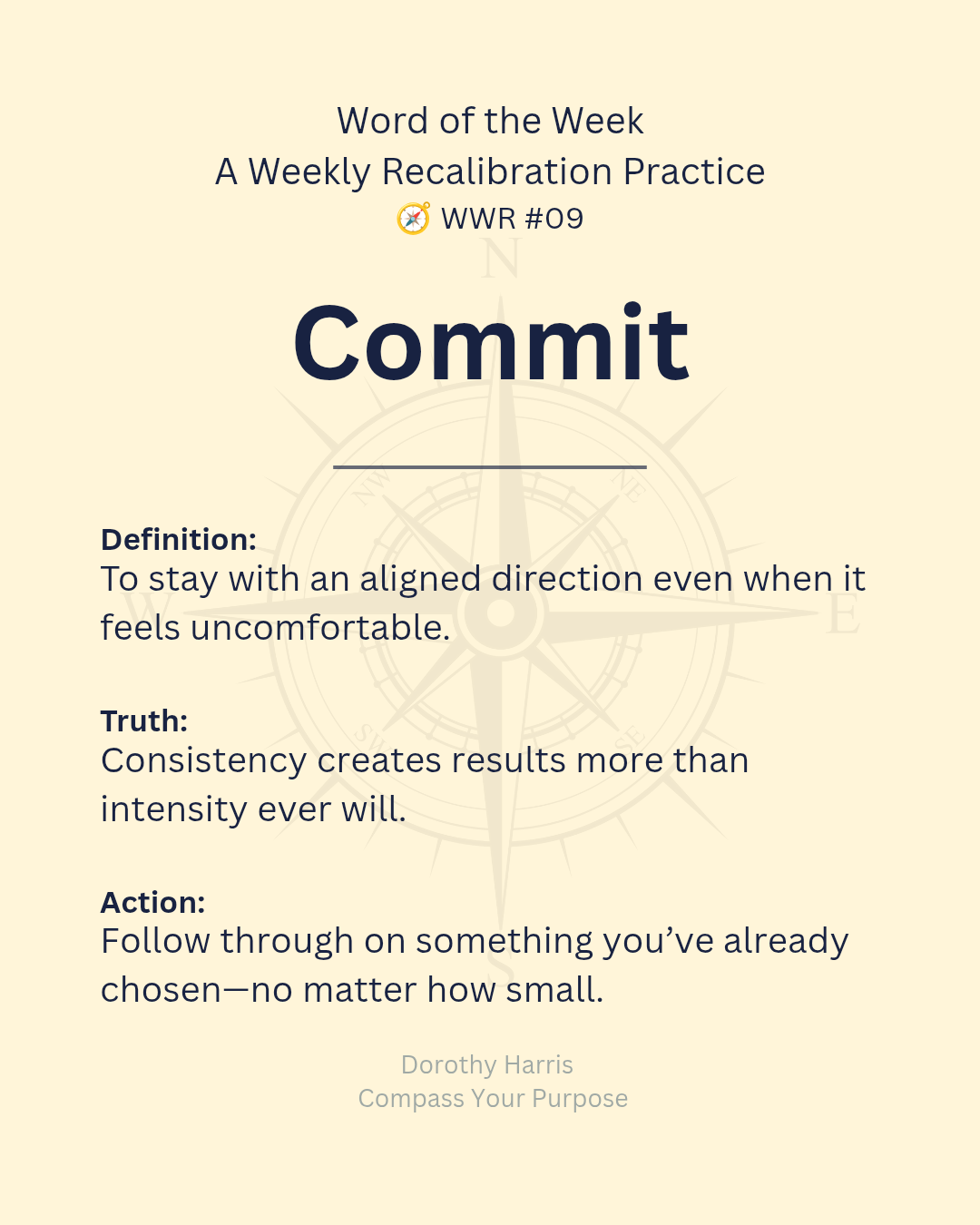 Commit asks you to stay with what is aligned, even when it feels uncomfortable. It is how small, steady follow-through begins to create real change.
